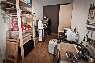 Après plusieurs années de menuiserie durant lesquelles j'ai débuté mon apprentissage de la lutherie en autodidacte, je suis allé en Angleterre apprendre les bases du métier. C'est à la Newark School of Instrument Making que j'ai suivi pendant deux ans les cours de Fabrication des guitares classiques (Classical Guitar Making) sous la tutelle des luthiers anglais Roy Courtnall, James Lister, Malachy Brady et Adrian Lucas. J'y ai appris la lutherie classique dans la pure tradition espagnole. A la fin de cette formation j'ai obtenu une Distinction, récompensant le travail effectué pendant cette période et la qualité des guitares réalisées. J'ai approfondi mes connaissances dans l'atelier du luthier Benoit de Bretagne (Bernieulles – Pas de Calais) pour qui j'ai travaillé durant trois ans. J'y ai appris de nombreuses choses, que ce soit en matière de réglage, restauration ou entretien de guitares en tous genres (classique, folk, jazz, électrique, basse,...), du plus modeste instrument à la guitare de prestige (Ramirez, Martin, Gibson, Dupont, Castellucia, Di mauro,...). En participant à la fabrication des guitares de Benoit de Bretagne, j'ai assimilé les techniques de réalisation des guitares folk, manouche et ukulélés. En septembre 2011, j'ai ouvert mon atelier à Bordeaux. J'y effectue tous types de réglages, réparation et également la fabrication de guitares classiques et folk. En juin 2012, le Rotary Club de Bordeaux m'a attribué le Prix du Travail Manuel et des Métiers d'Art